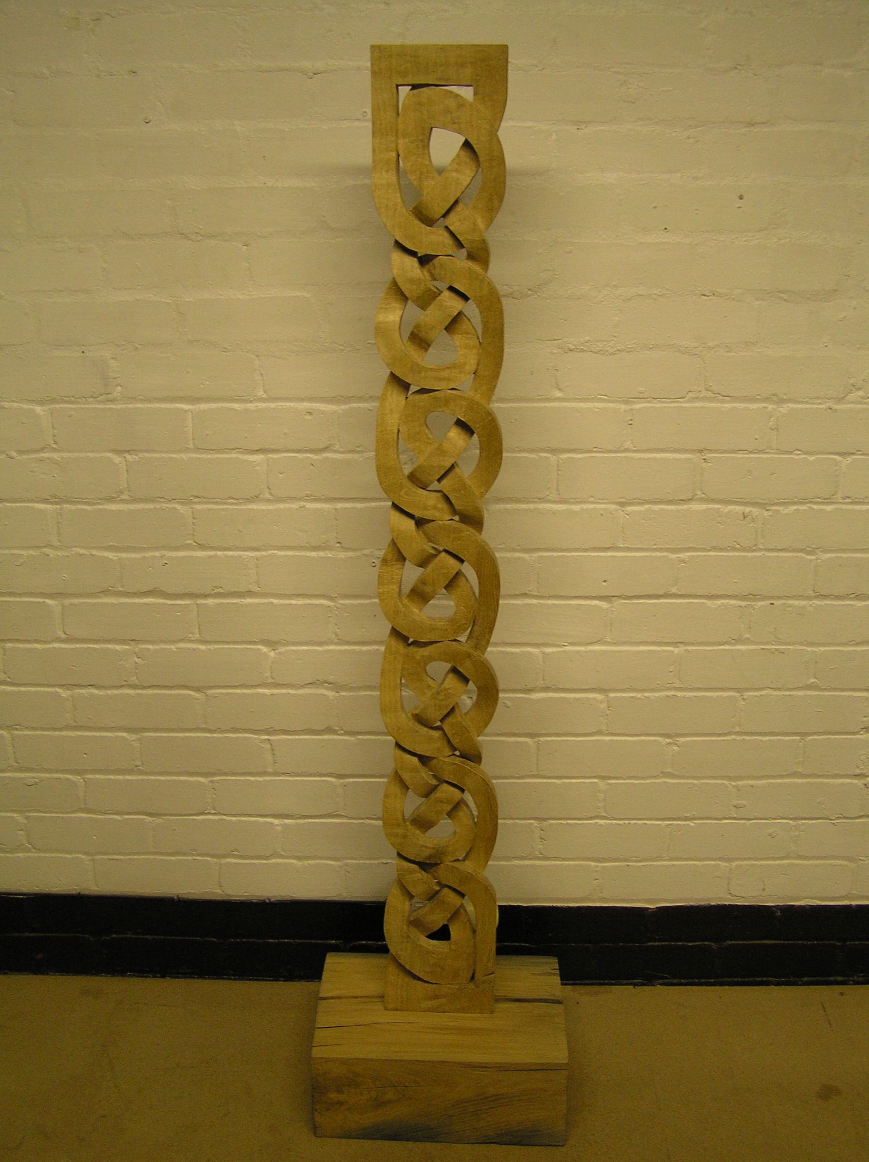 knotwork column, solid oak, celtic knotwork, hand carved, sculpture, made in Scotland, bespoke, custom made, wood art, celtic design,