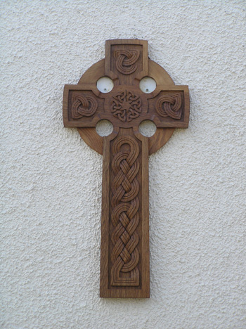 Large Cross Published February 14, 2013 at 350 × 468 in Celtic Knotwork Celtic Cross This hand carved solid oak celtic cross was made for the St. Francis of Assisi Church in Aberdeen. It hangs on an exterior wall.