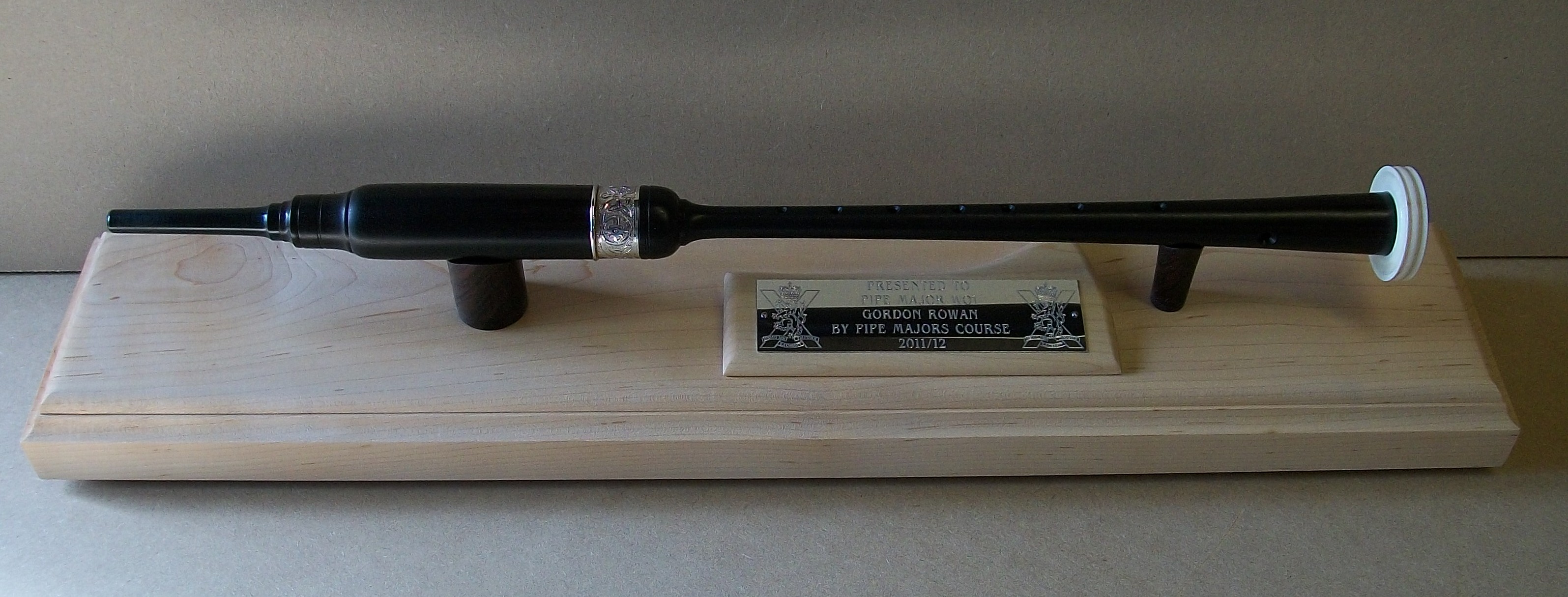 chanter stand, trophies, presentation ,presentation chanter stand, bespoke, maple, rosewood, award, chanter, custom made,